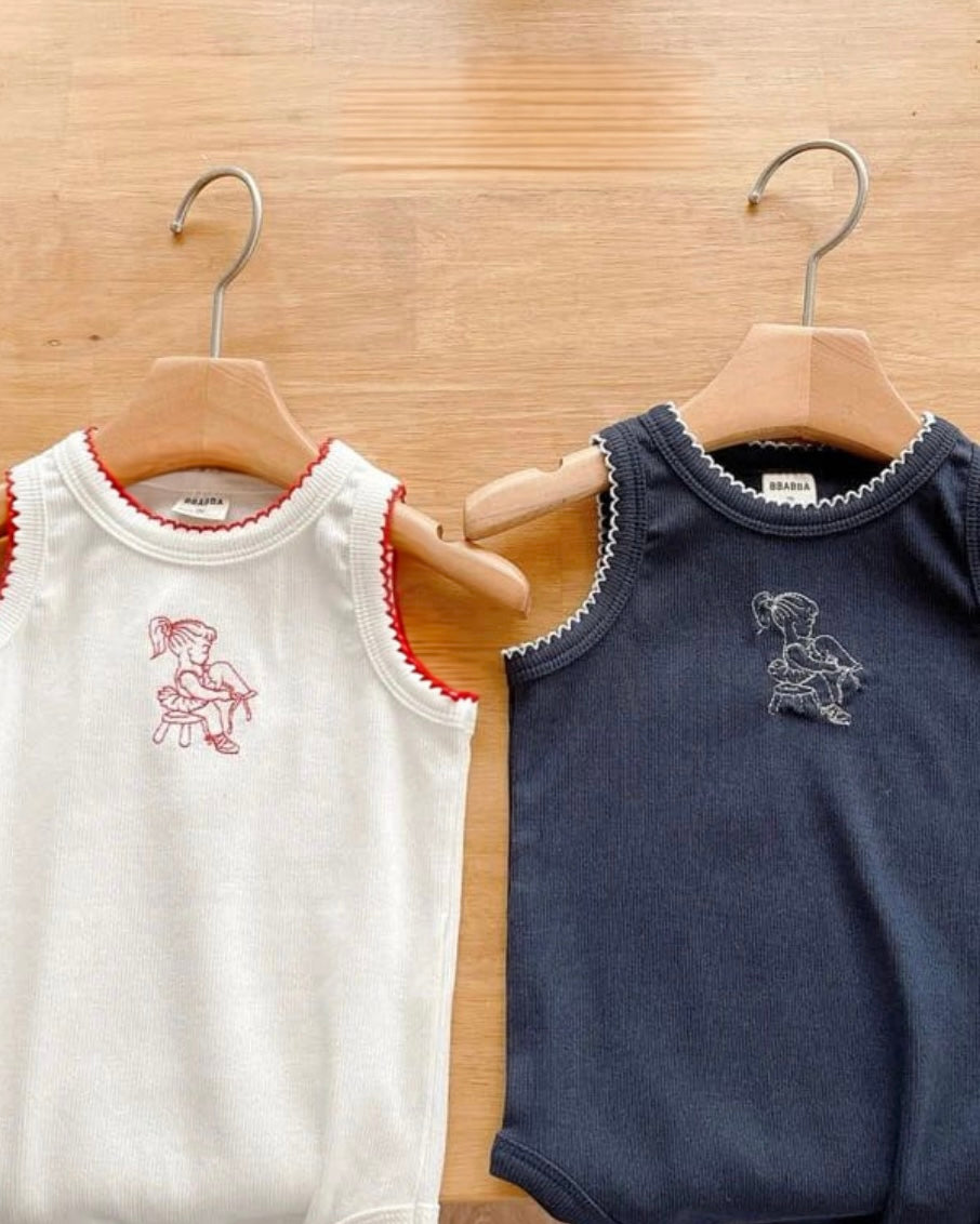 Subtle embroidered silhouette of a little girl planting endless wonder