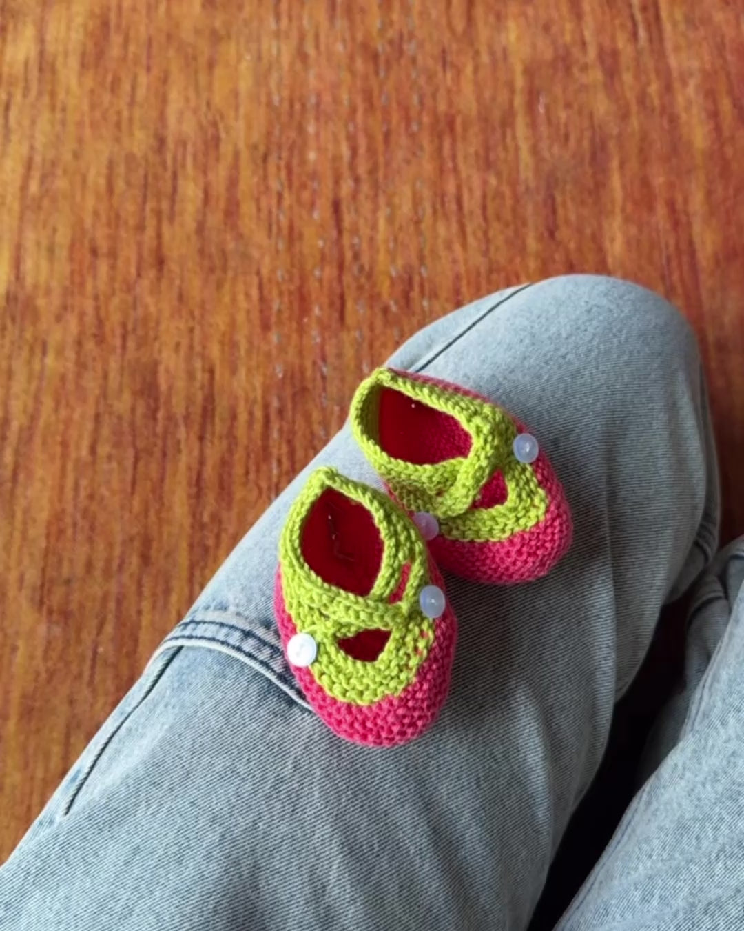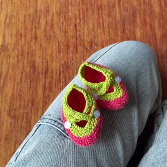 Hand-knit, one-of-a-kind Mary Jane baby shoes
